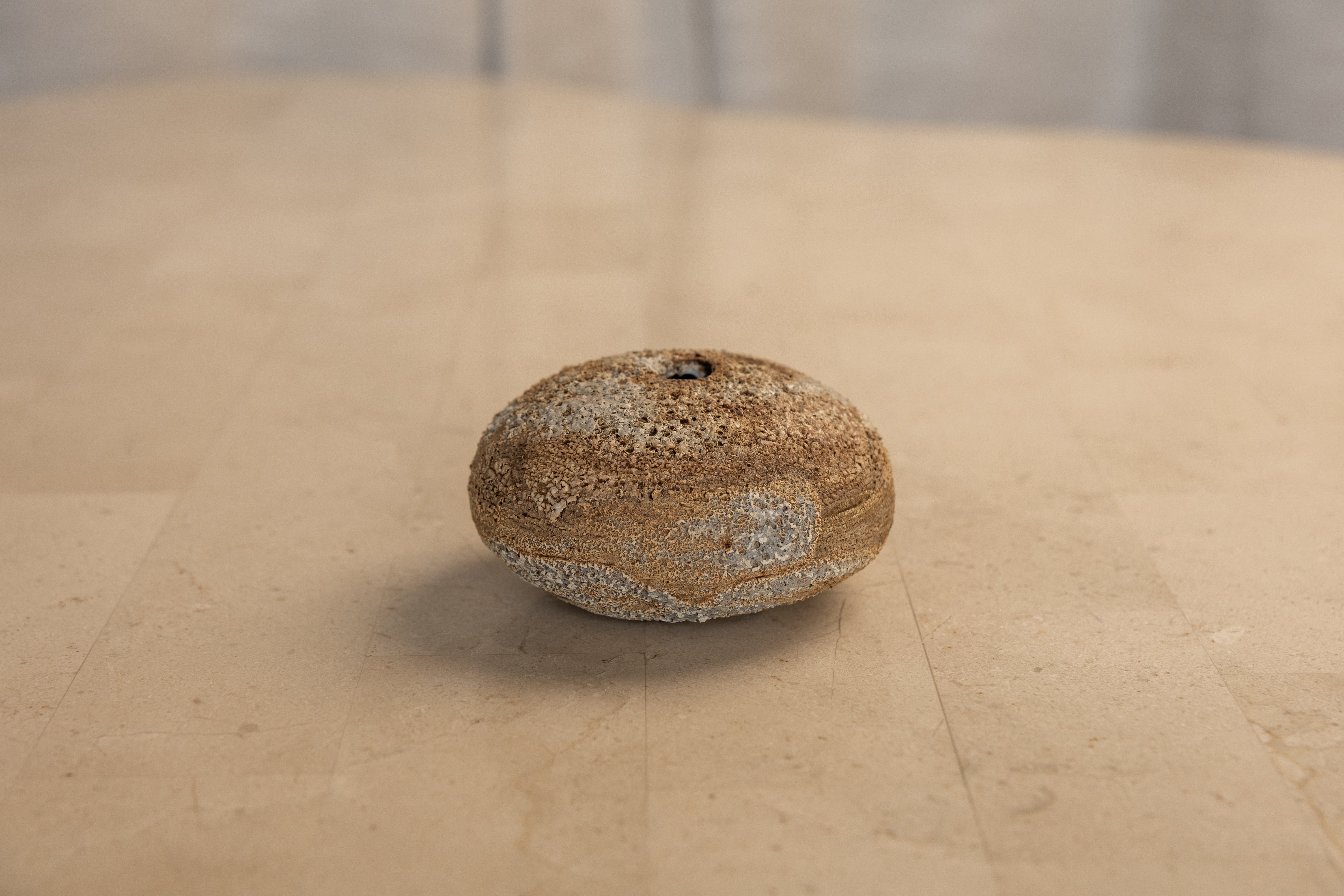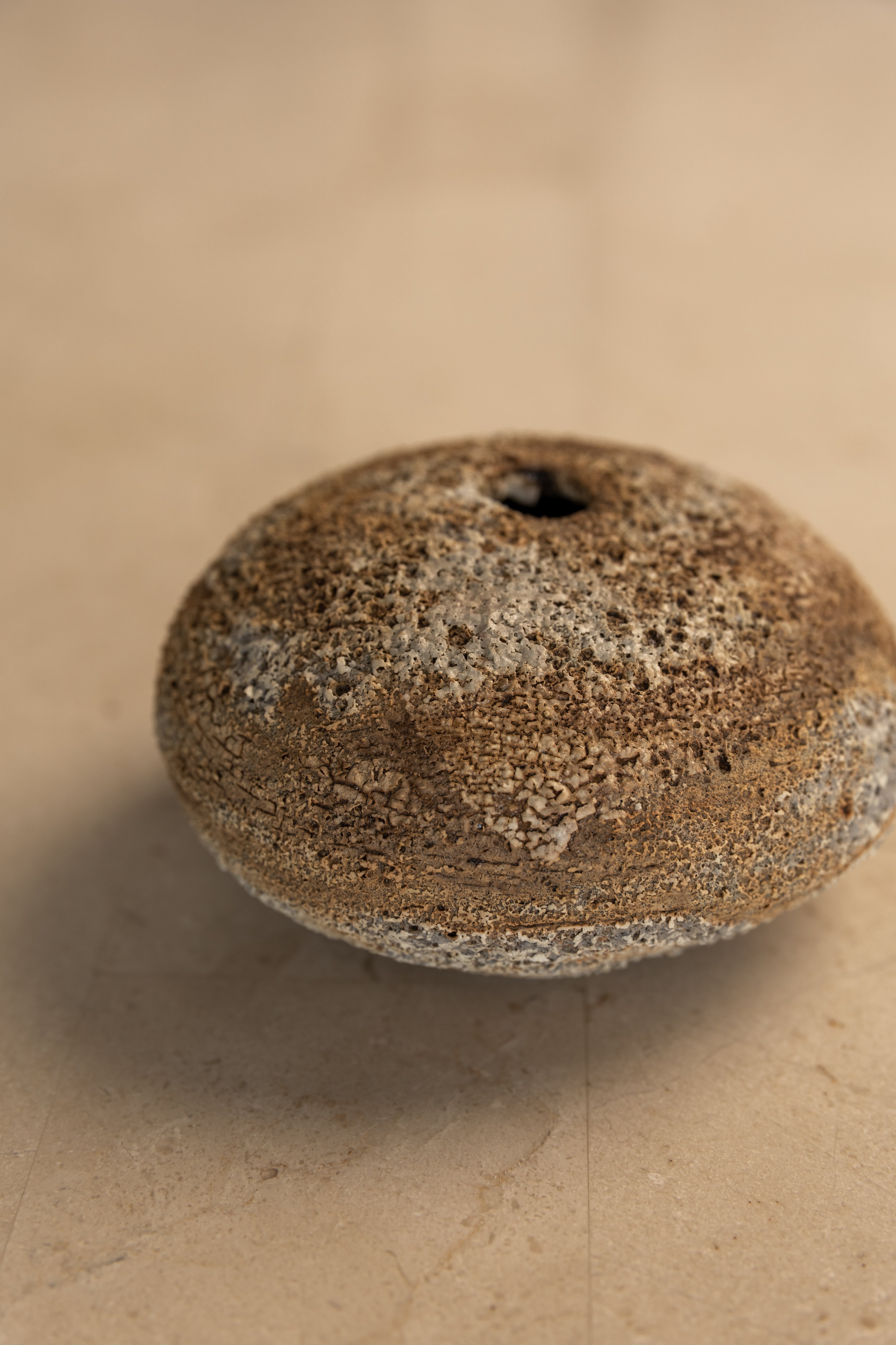 Maria Loram's signature minimalist bud vase that brings a quiet, organic presence to any interior. Handcrafted in stoneware with my textured glaze, it feels like a tiny piece of landscape you can place on a shelf, bedside, or altar. Fully glazed and watertight inside, it’s perfect for a single stem, a foraged twig, or simply as a small sculptural object on its own.