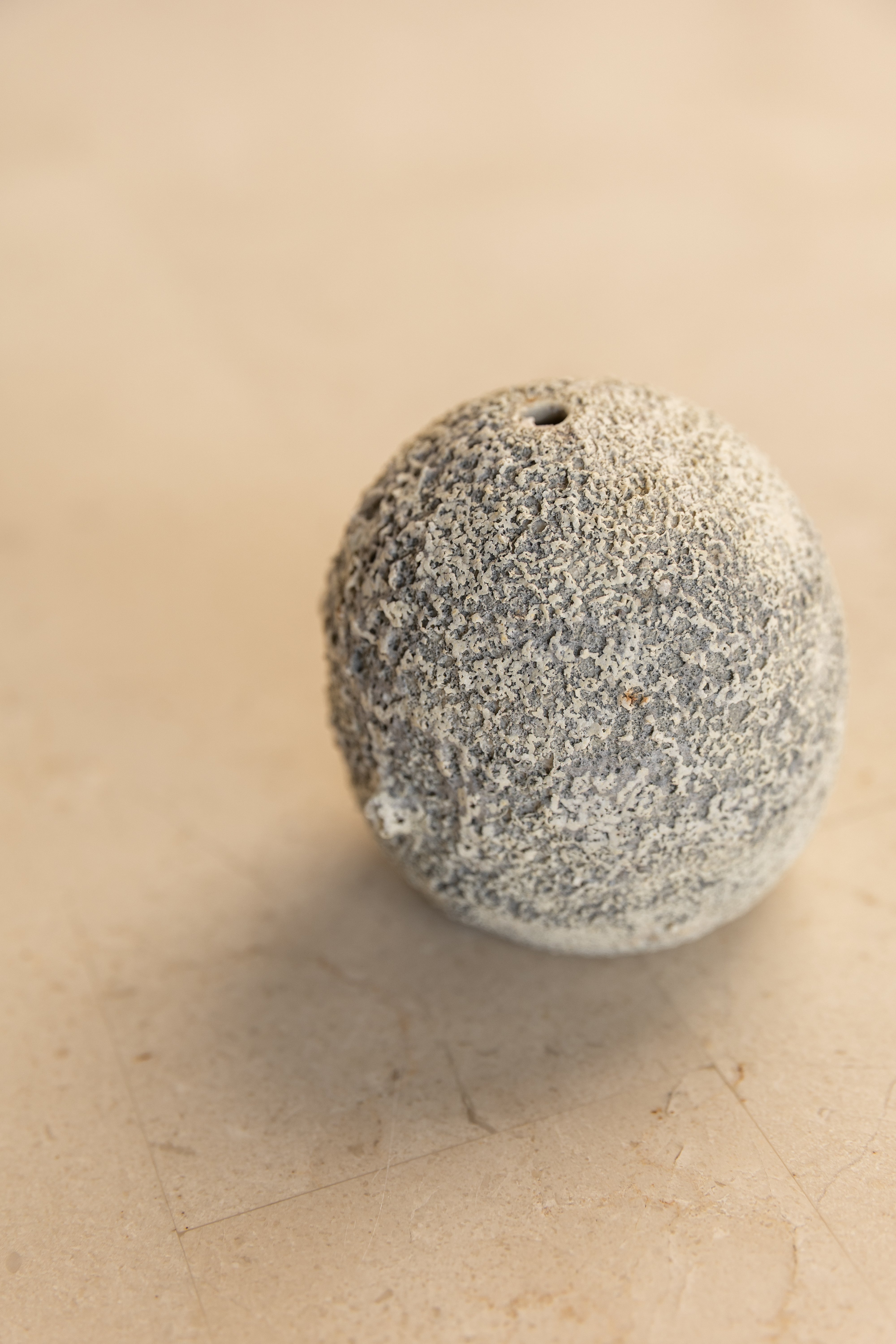 Maria Loram's signature minimalist bud vase that brings a quiet, organic presence to any interior. Handcrafted in stoneware with my textured glaze, it feels like a tiny piece of landscape you can place on a shelf, bedside, or altar. Fully glazed and watertight inside, it’s perfect for a single stem, a foraged twig, or simply as a small sculptural object on its own.