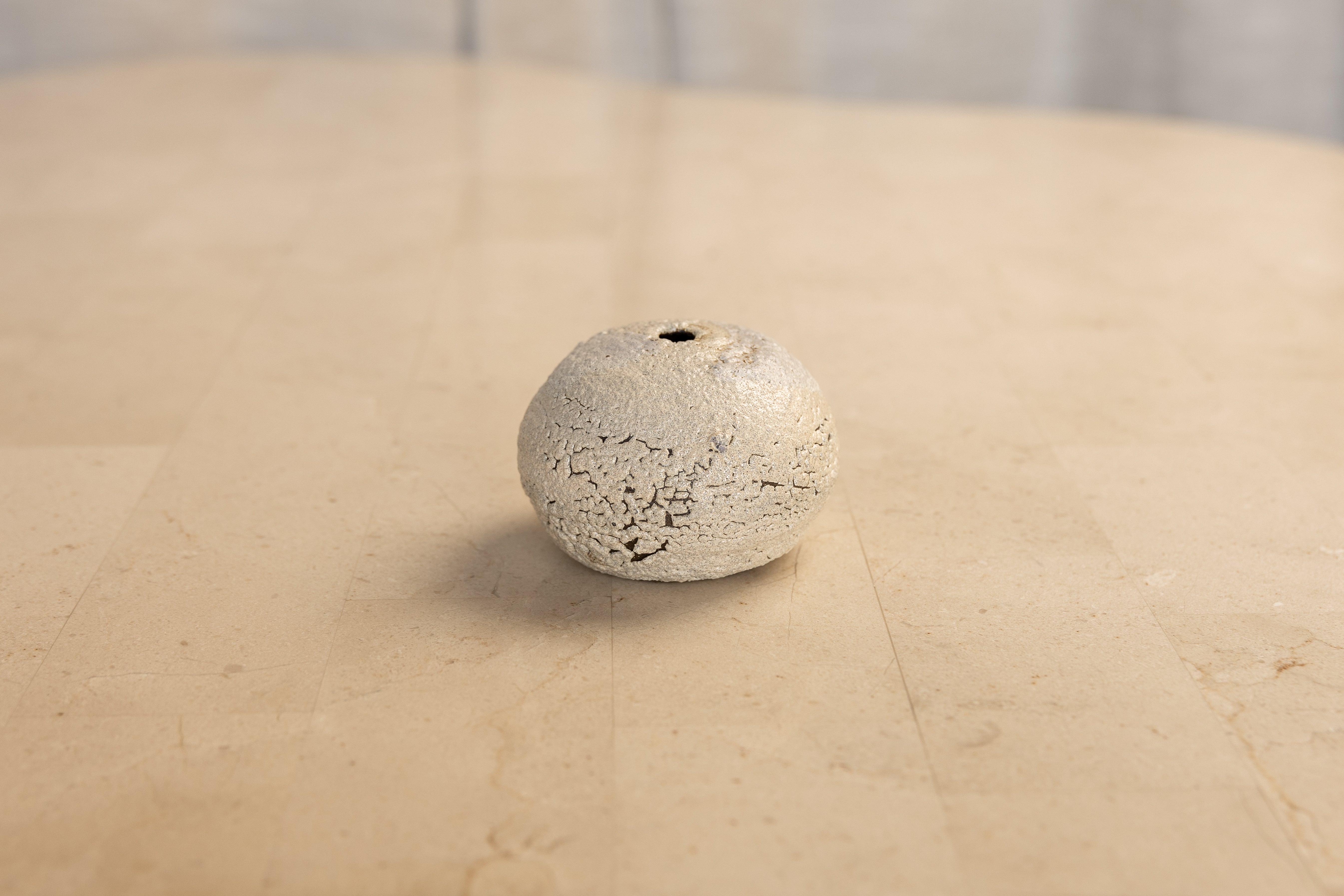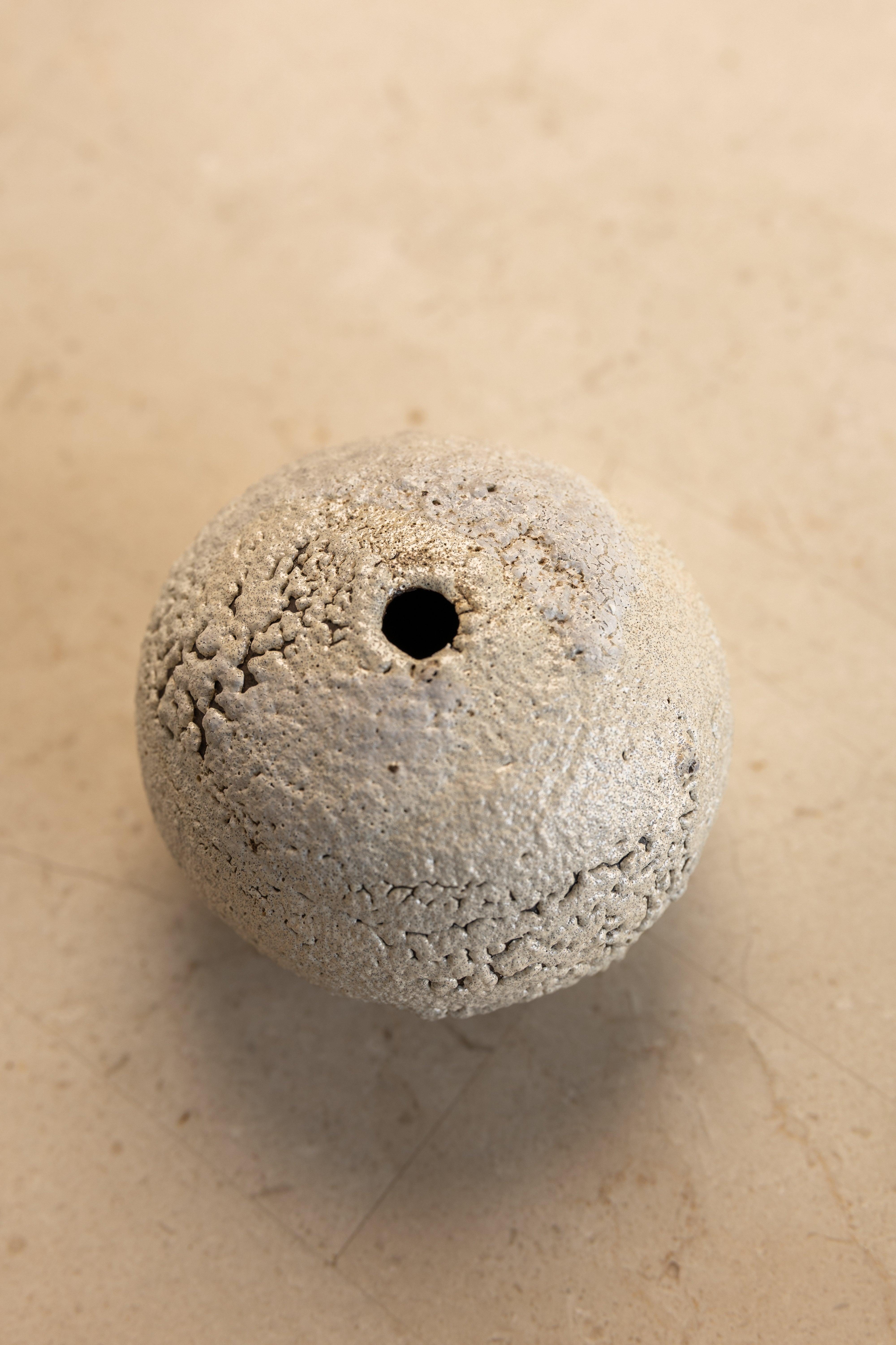 Maria Loram's signature minimalist bud vase that brings a quiet, organic presence to any interior. Handcrafted in stoneware with my textured glaze, it feels like a tiny piece of landscape you can place on a shelf, bedside, or altar. Fully glazed and watertight inside, it’s perfect for a single stem, a foraged twig, or simply as a small sculptural object on its own.