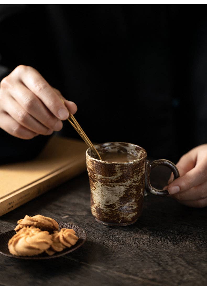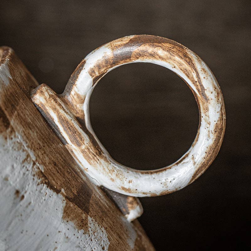 Indulge in the effortless charm of our Handmade Stoneware Mug. Crafted with care, this coarse pottery mug exudes a Japanese retro vibe while retaining minimalist elegance. Its unique design, featuring a delicate flower handle, adds a touch of creativity and sophistication to your morning coffee routine.