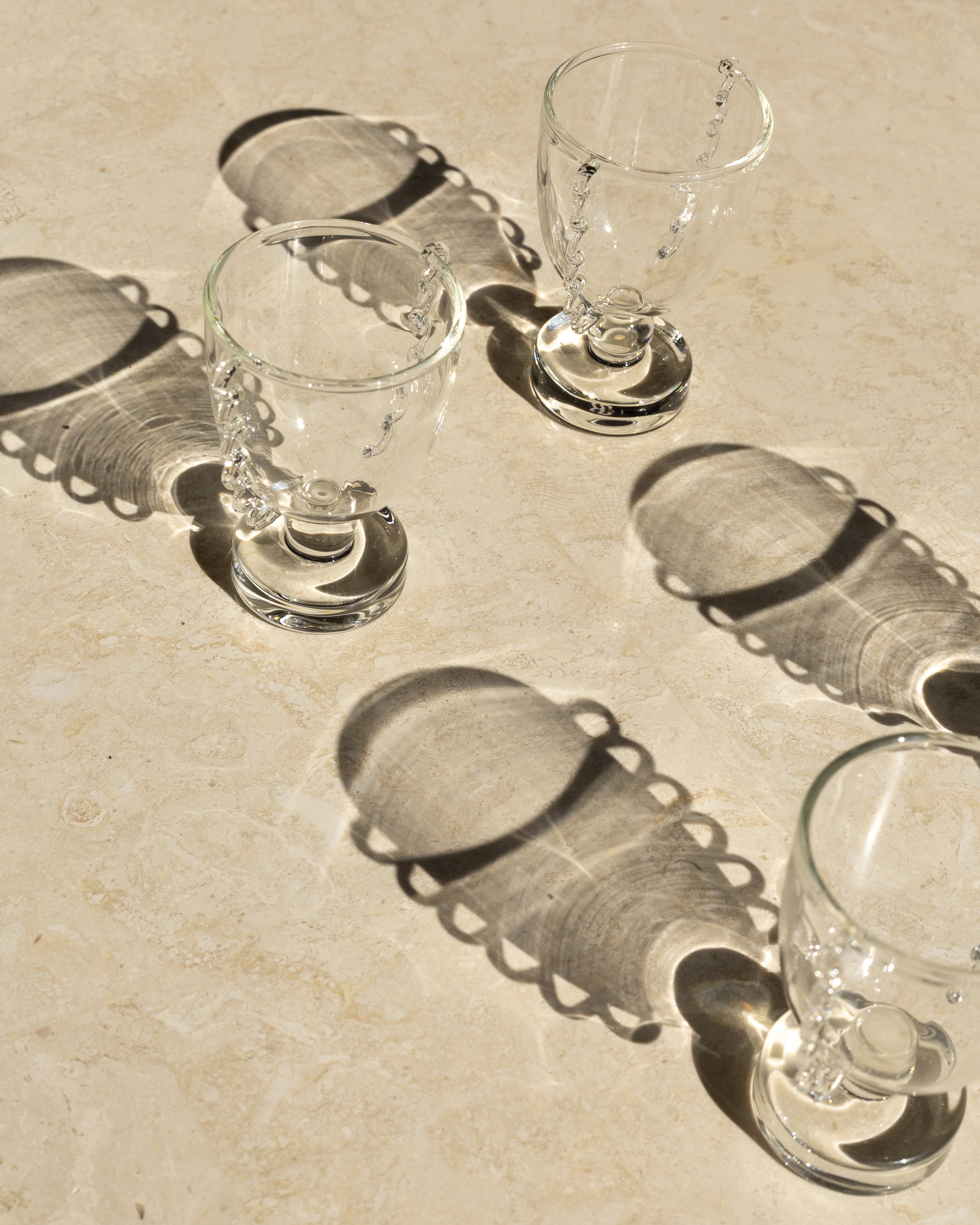 A set of two small multi functional vessels: small shot glass, salt dish, cocktail pick holder, etc. We like to think of them as a throne for an egg, sold as a set.
