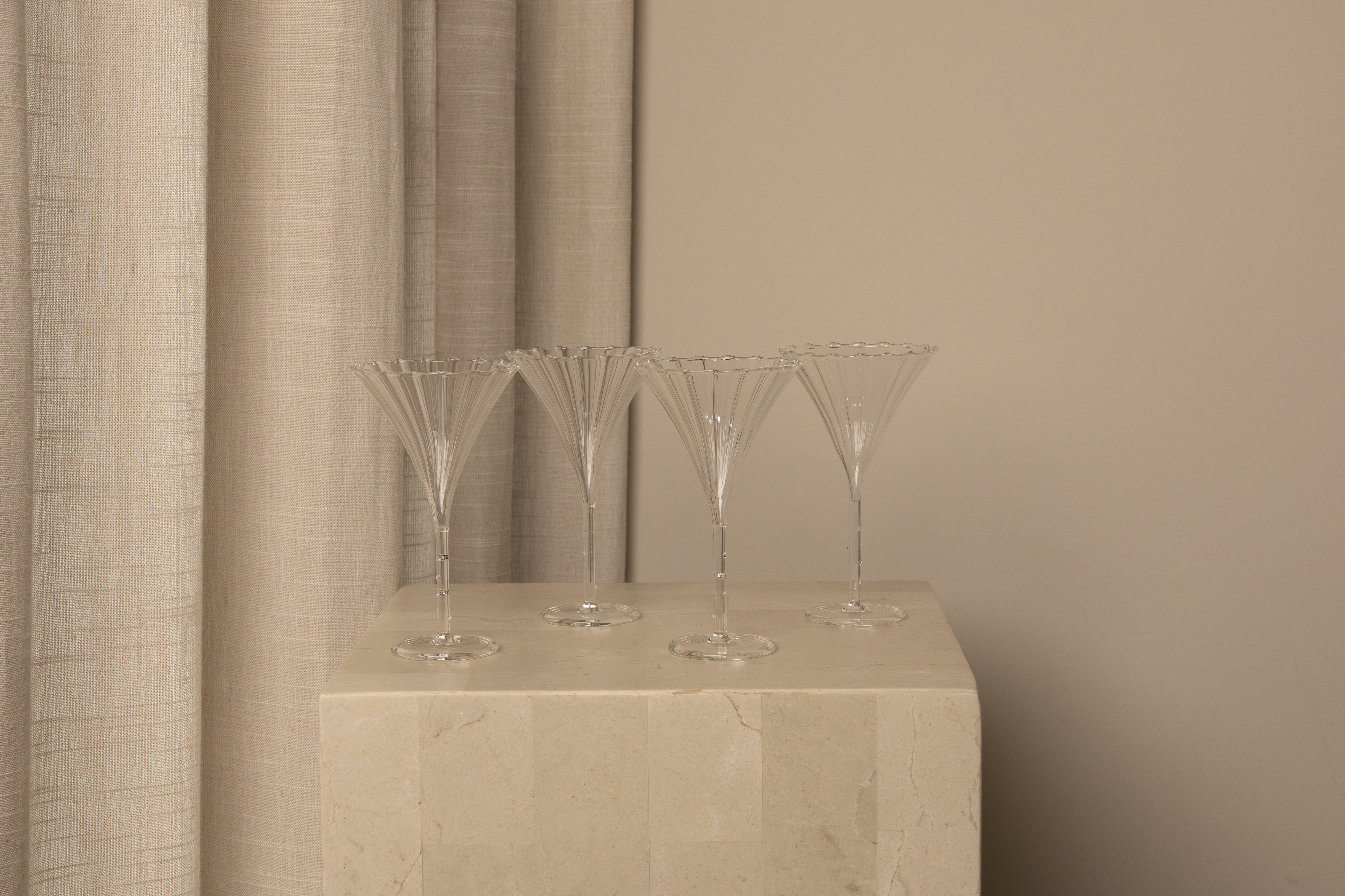 The Trumpet Aperitif Glass’s delicate shape and size are perfect for a small cocktail, a liqueur or digestif, or a simple vermouth — something to sip and savor. Sold as a set of 4.