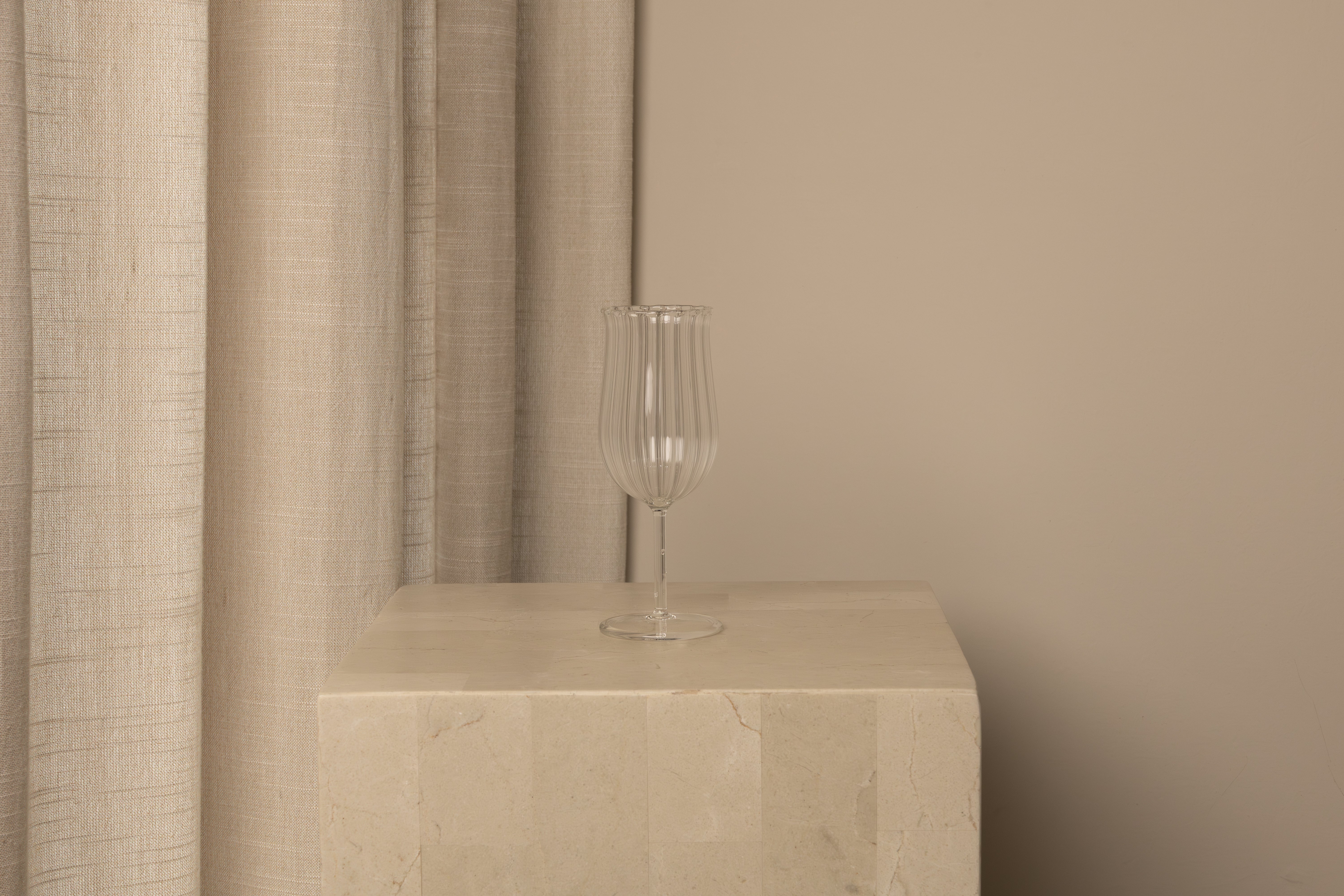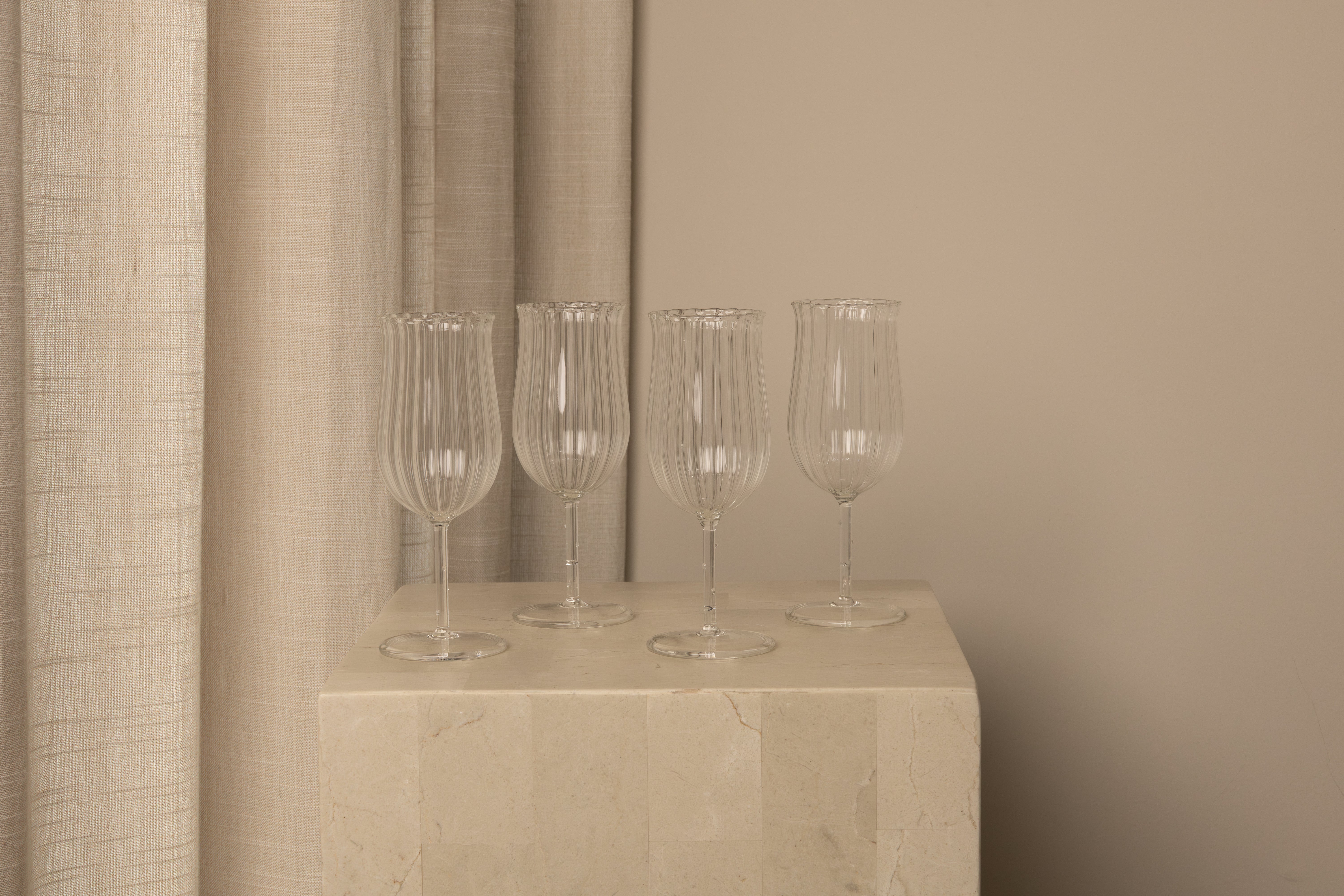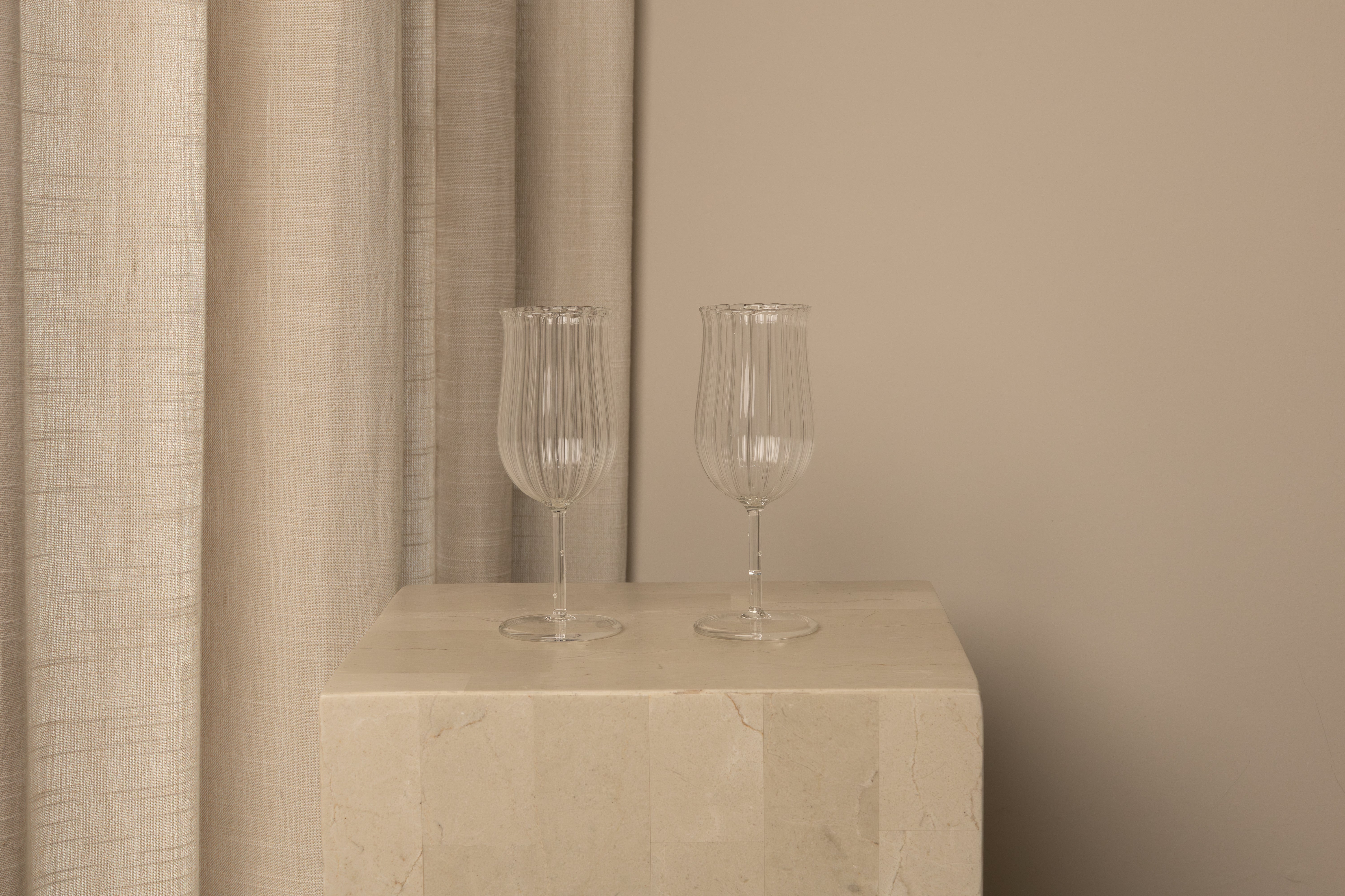 Taking cues from the simple bistro glass, the Tulip Wine Glass works with any color, gently blooming at the brim to facilitate the release of aromas. Sold as a set of 4.