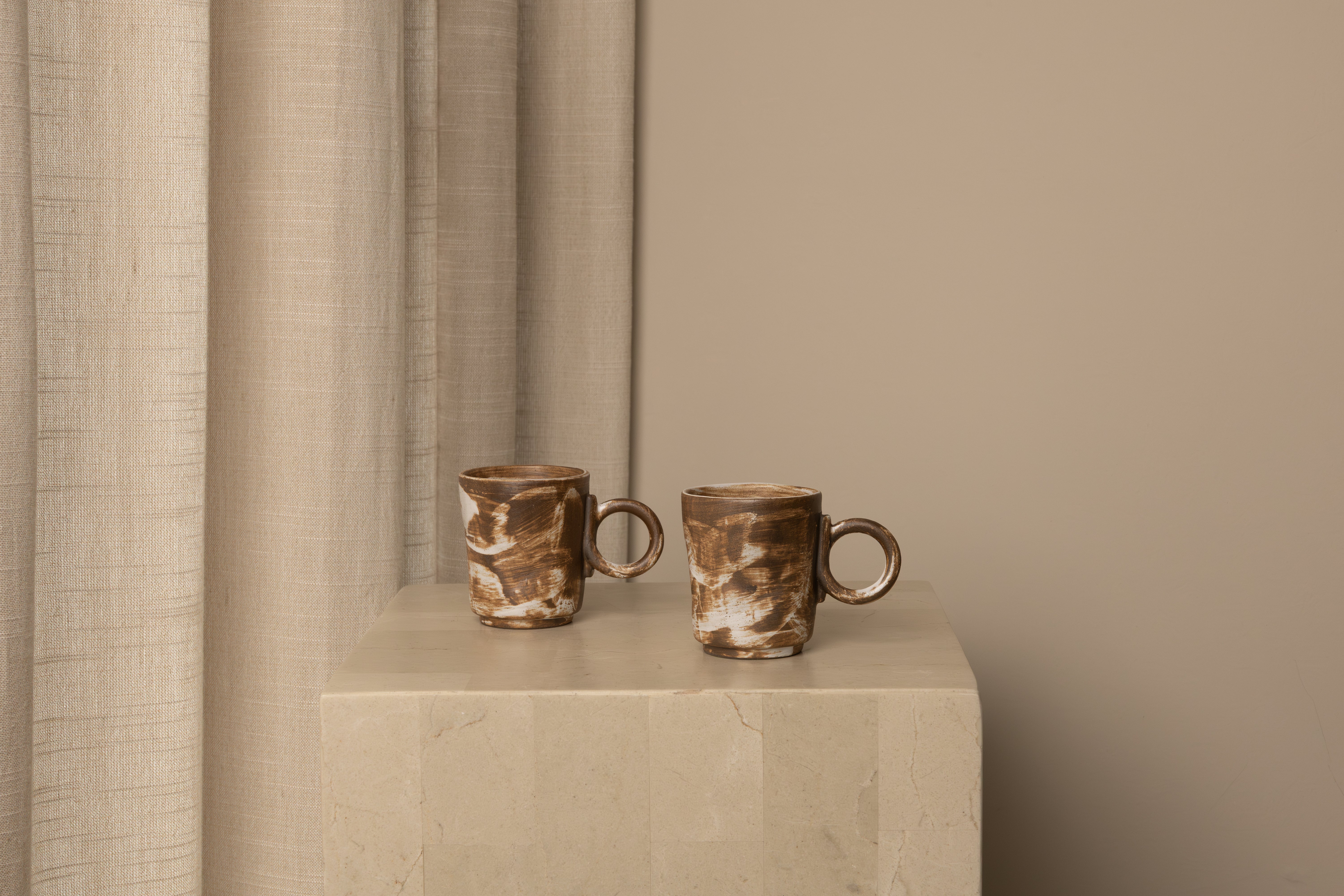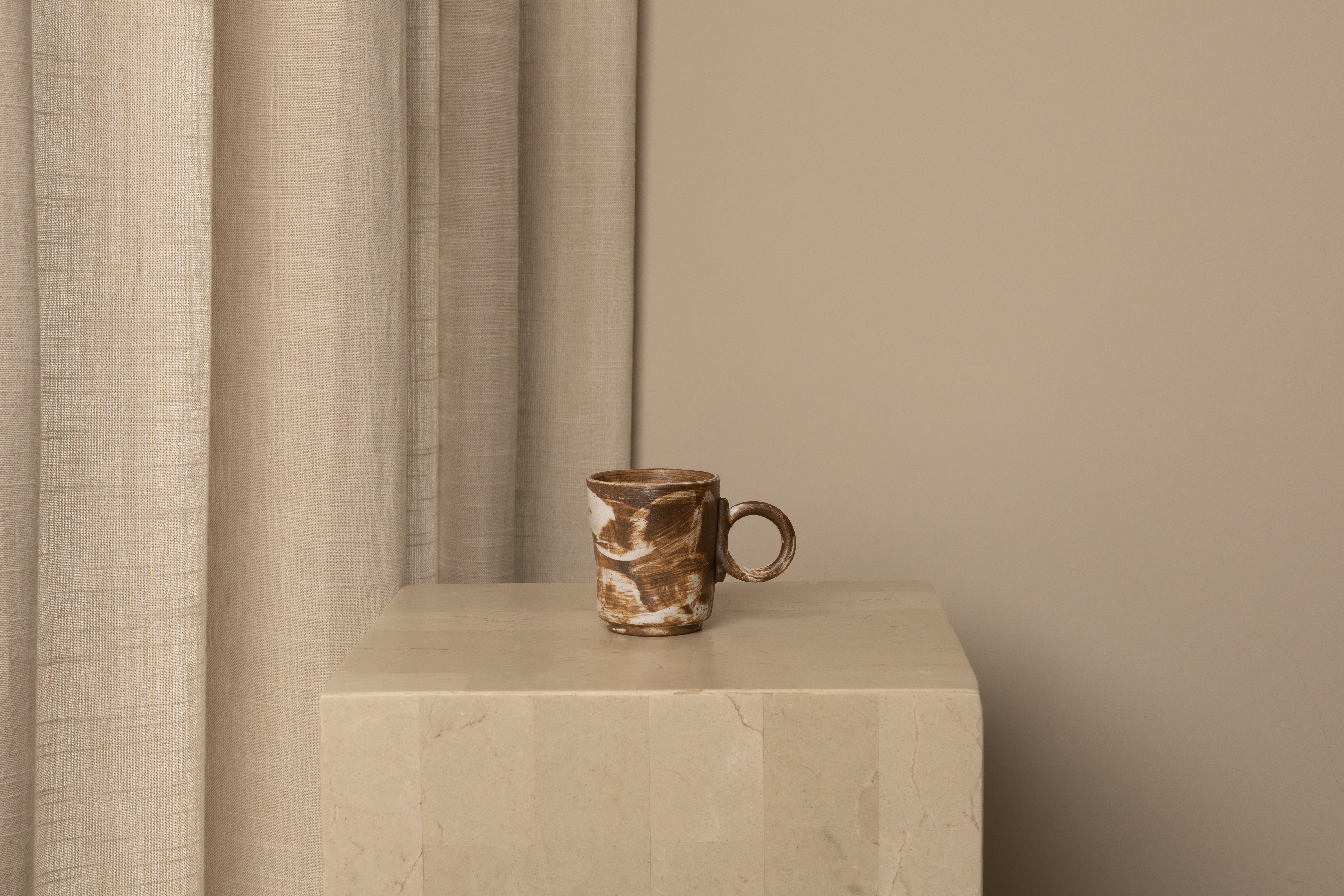 Measuring approximately 6.7 cm in diameter and 7.7 cm in height, this stoneware mug holds an impressive 160 ml. The price listed is for one mug. No two mugs are alike, embodying the pinnacle of quality and craftsmanship. Individually created by the artisan's hand, subtle variations between pieces are to be expected.