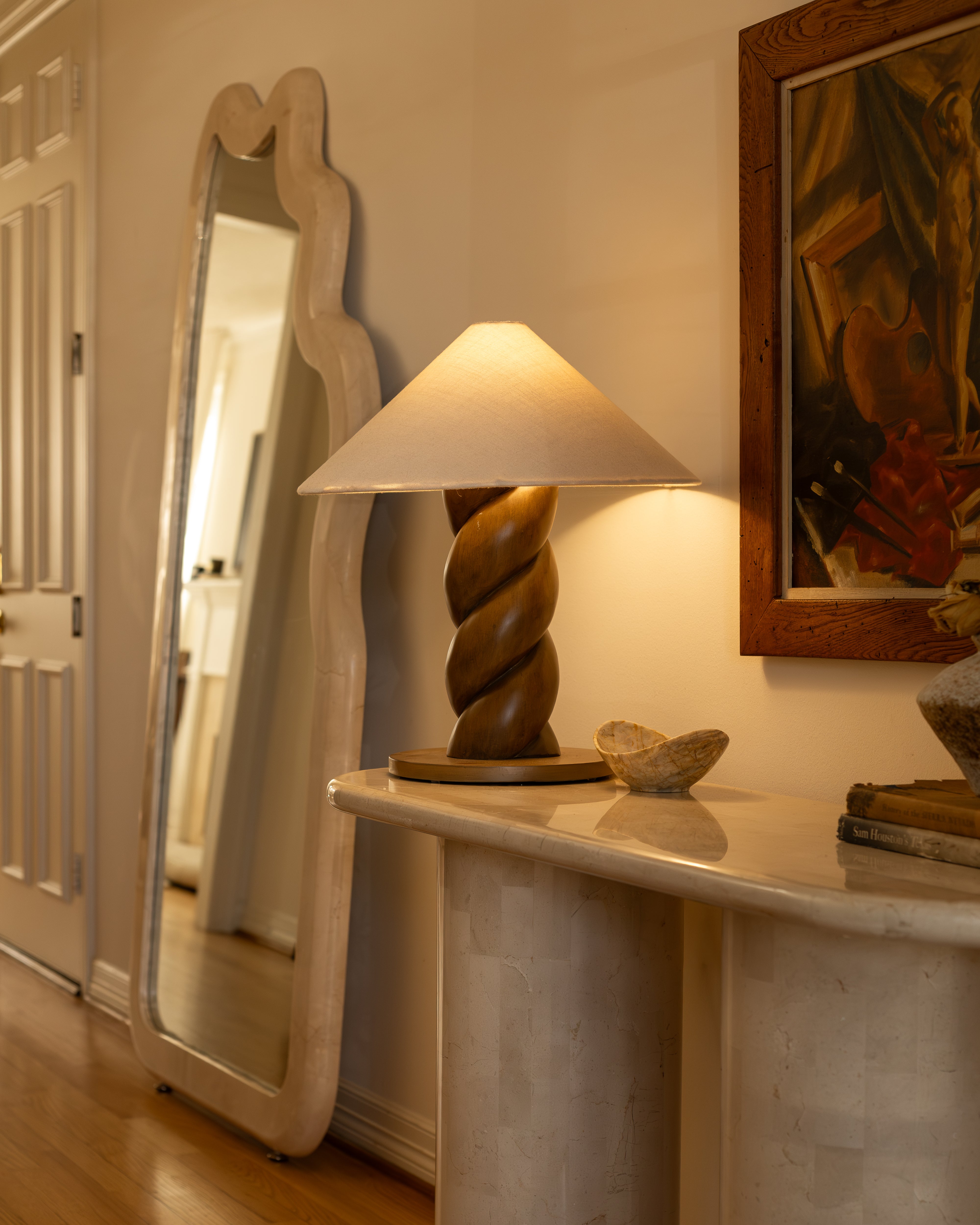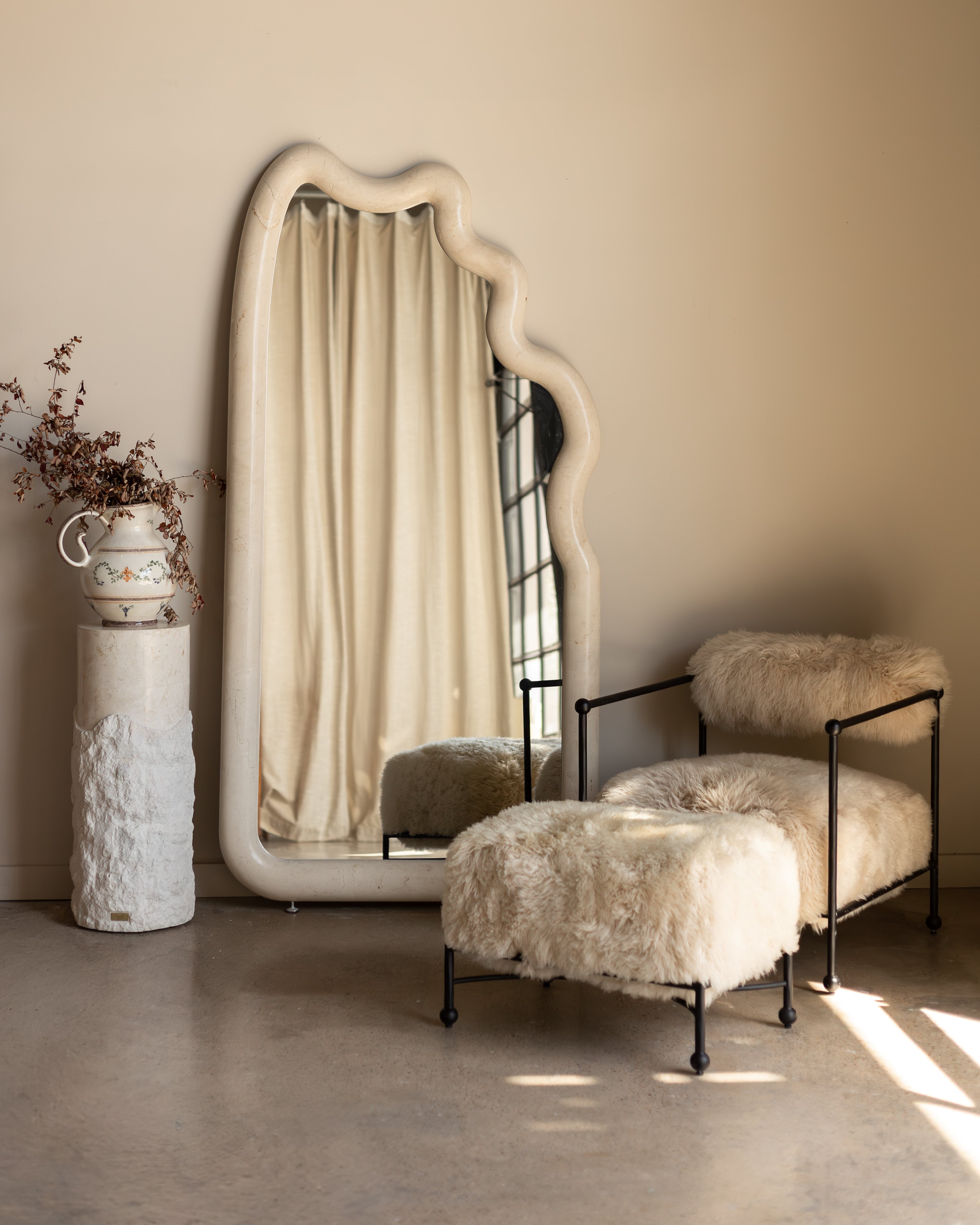 An En Gold design favourite, the Paradis Mirror is a sculptural statement piece for the home. Crafted entirely from solid Spanish Beige Marble, its bold form is softened by gentle curves, offering an exploration of shape, weight, and presence.