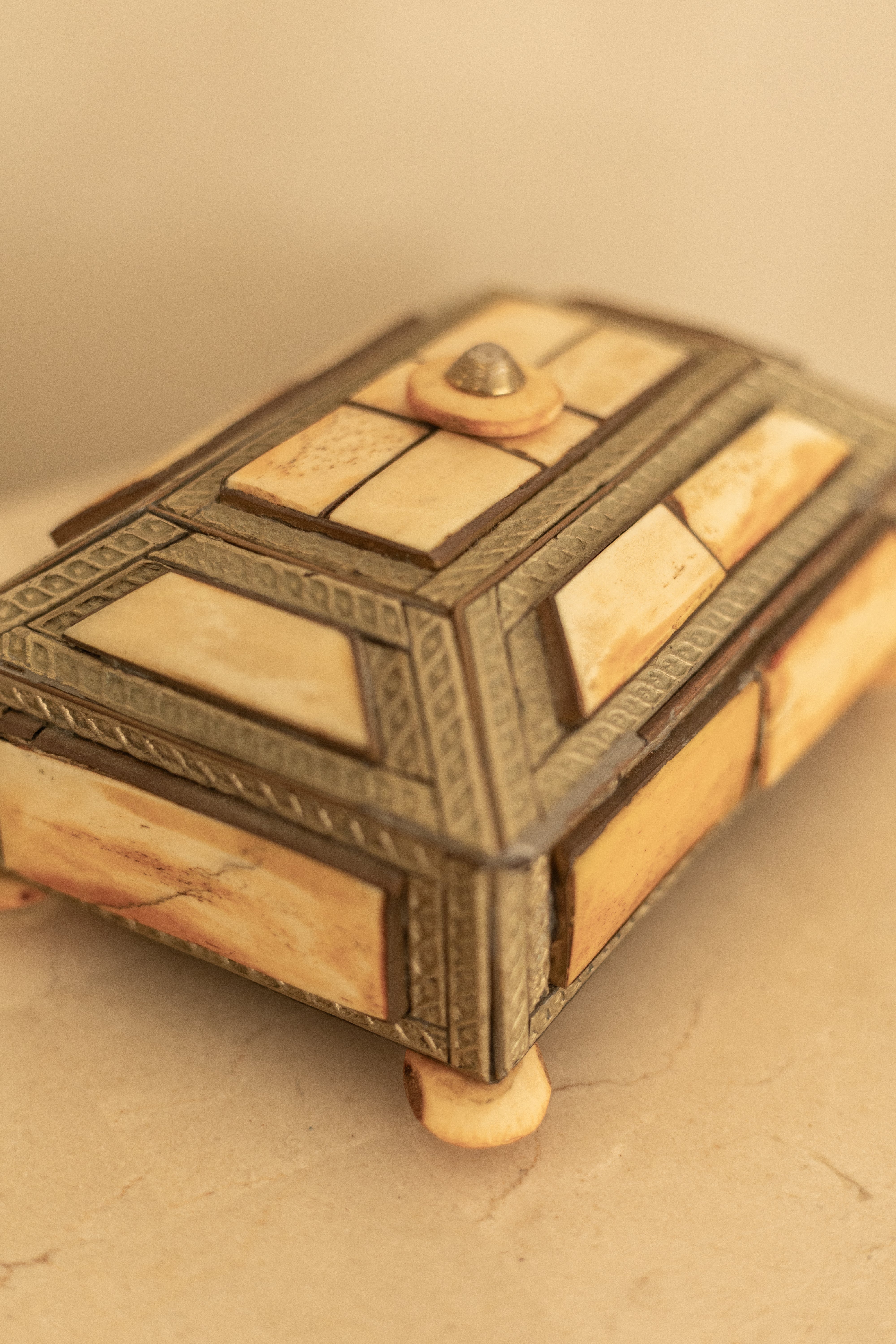 No. 3 Moroccan Camel Bone & Brass Inlaid Jewelry Box