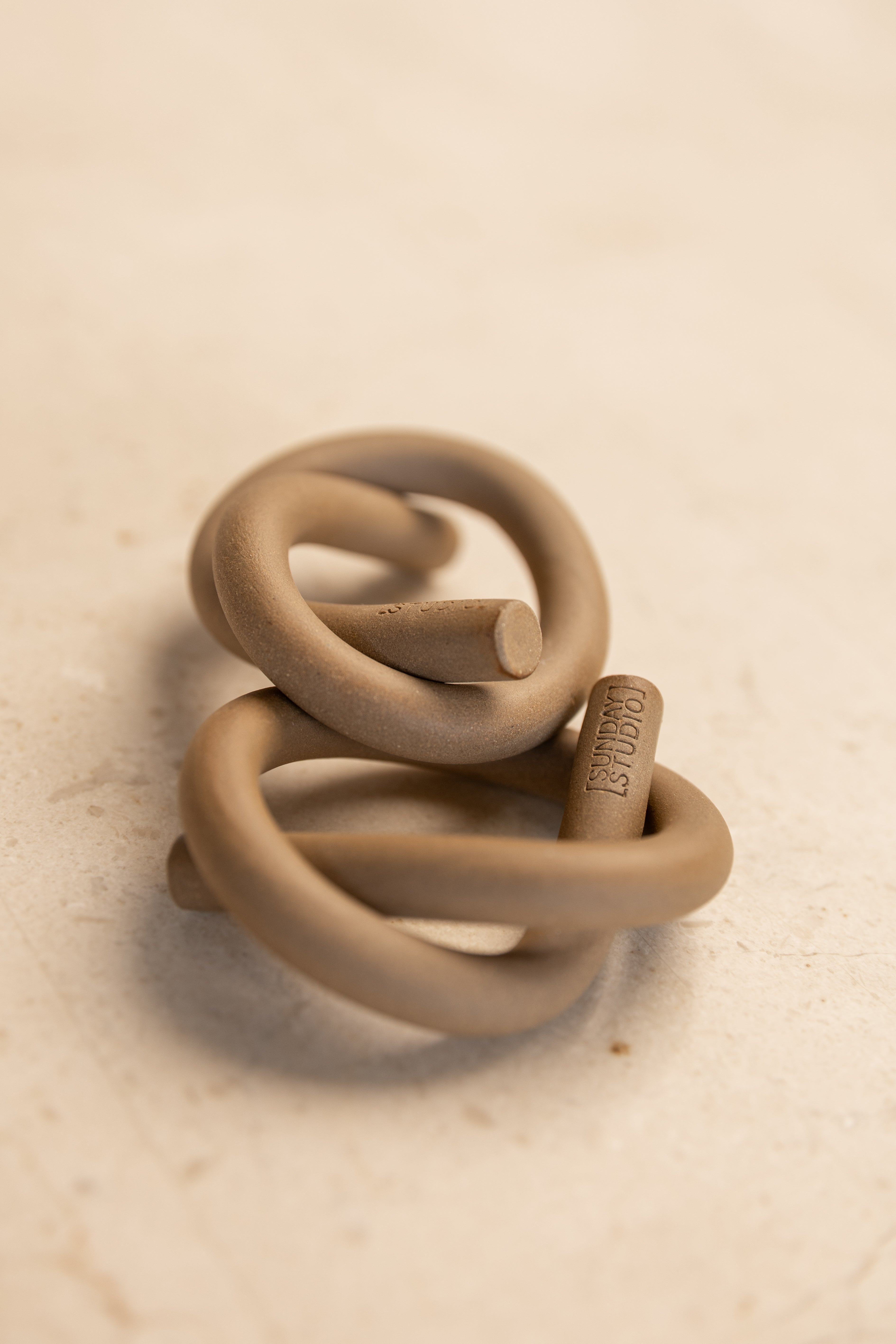 Handrolled unglazed stoneware knot. Due to the handmade nature of this item, slight variations in size and finish are to be expected.