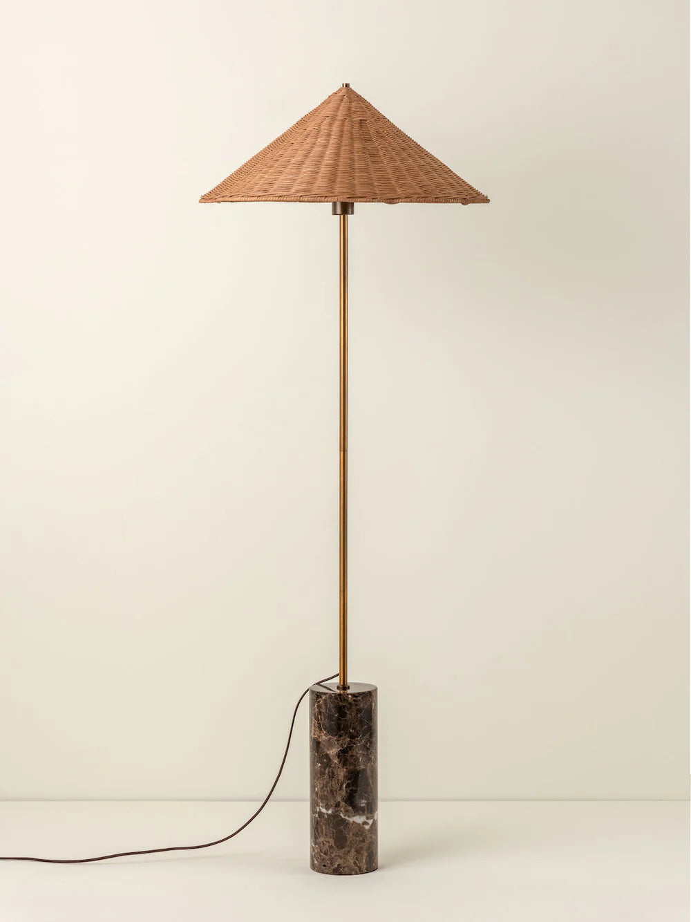 Blending the patina of Spanish marble with the summer holiday feeling you get from the way light filters through rattan shades, the Ardini Floor Lamp evokes a feeling of year-round relaxed glamour.