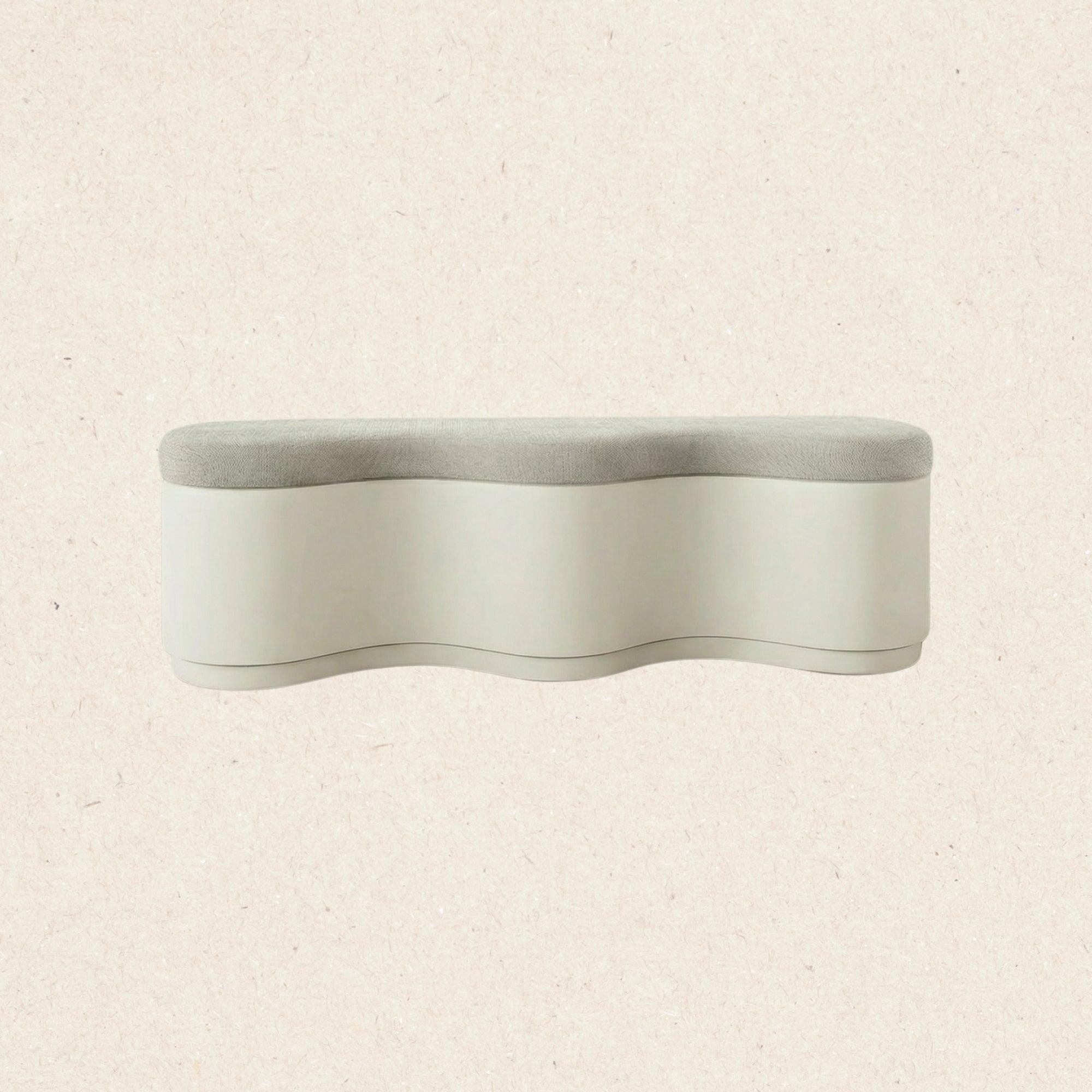 Offering a sense of fluidity and softly curving dimension, the Triana Bench is an elevated and captivating bench seating and storage design. The perfect addition to an entryway, end of bed or living space. Handcrafted timber base with upholstered seating.